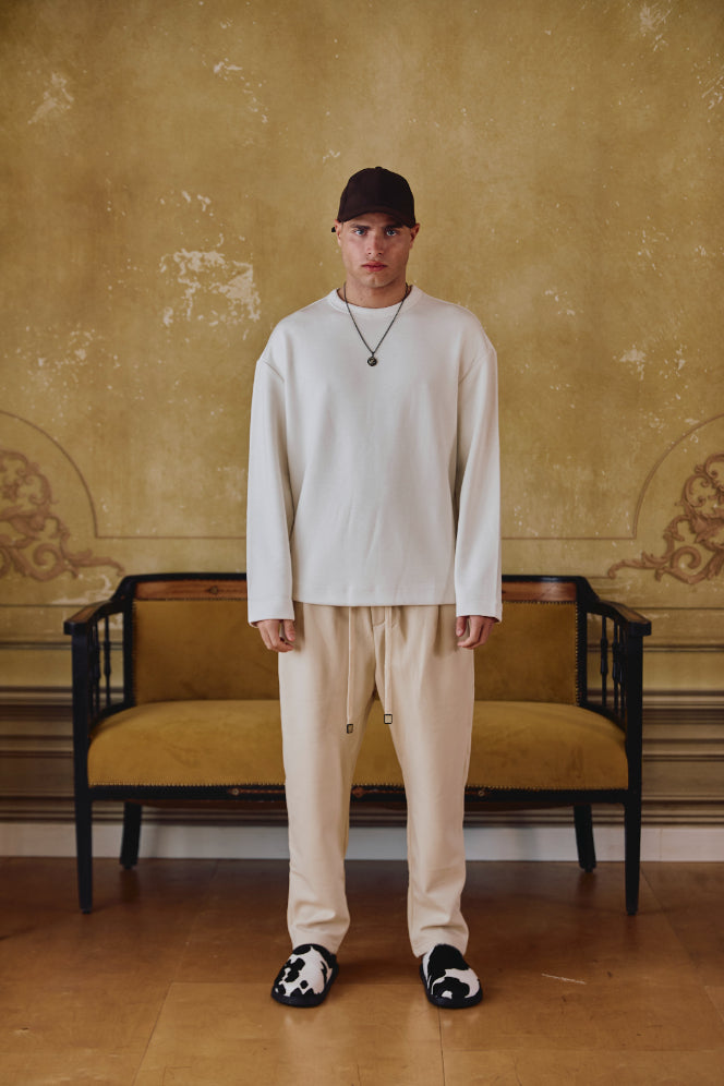 חולצה ארוכה שמנת בד צמר