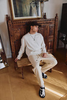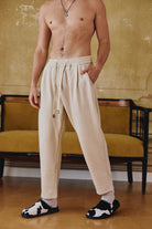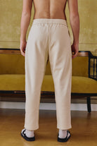 מכנסי טרנינג בגוון חול עם כיווצי מותן ושרוך, שילוב מושלם בין נוחות יומיומית למראה אלגנטי