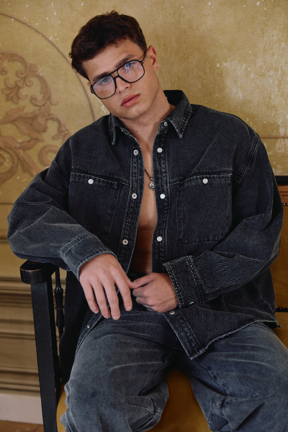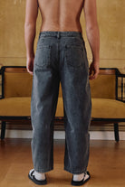מכנסי ג'ינס בגוון אפור פחם, גזרה רחבה ומשוחררת עם שטיפה עדינה למראה סטריט אורבני