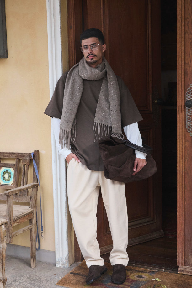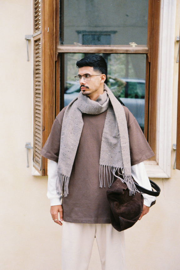 חולצת טי-שירט בגוון חום שוקולד, גזרת אוברסייז עם שרוול רחב למראה שכבות נינוח ומודרני0