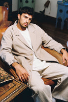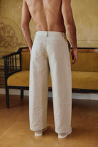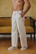 מכנסיים מחויטים בגוון אוף-וויט, גזרה ישרה ומוקפדת עם כפתור וכיסים למראה אלגנטי ועל-זמני